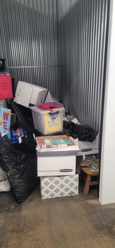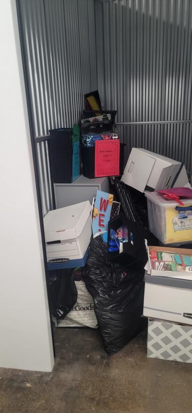 This unit appears to contain…BAGS, BOXES, SCHOOL SUPPLIES