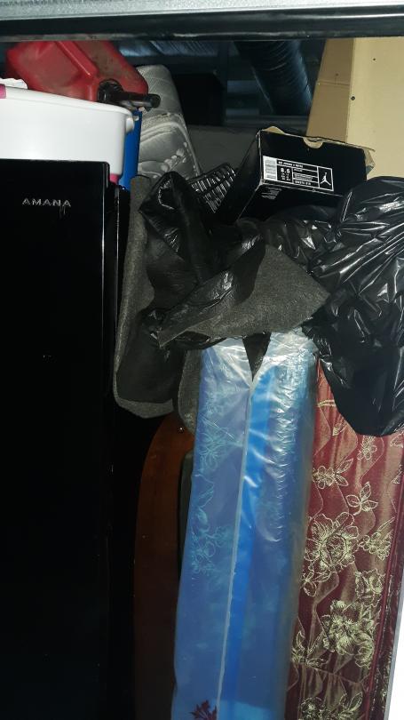 This unit appears to contain…Washing Machine,Dryer,Freezer or Fridge,Computer Equip.,Medical Supplies,Mattresses,Box Springs,Dressers or Armoire,Nightstands,Lamps,Chairs,Tables,Kitchenware,Decor,Plastic Bags,Plastic Containers,Clothing,Misc. Items,Laundry Baskets,Cleaning Supplies