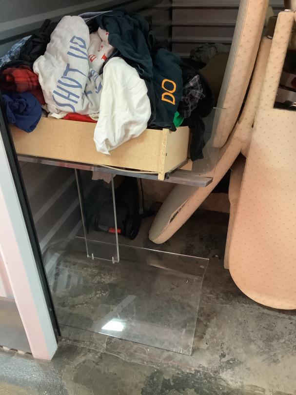 This unit appears to contain…Podium, chairs, dresser, clothes, bed rails, lamps, wall art, vacuum