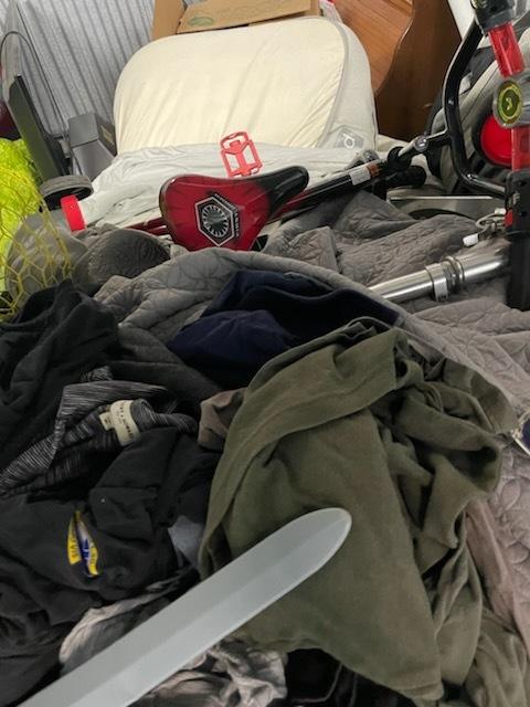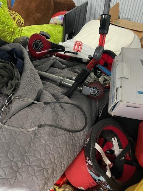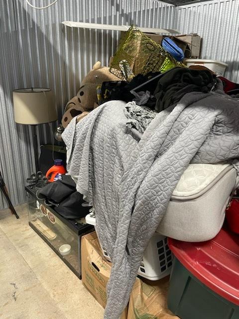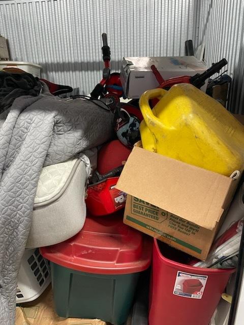 This unit appears to contain…boxes, fish tank, lamps, rugs, totes