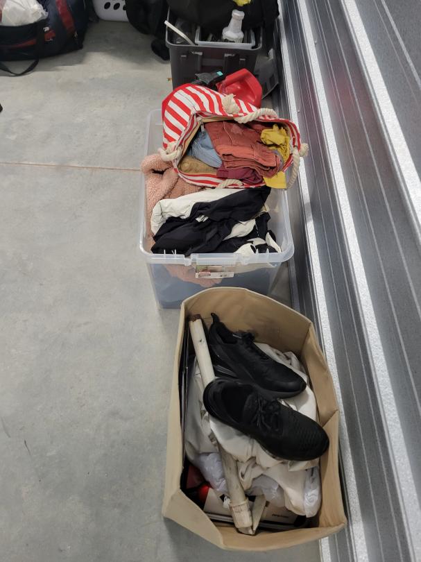 This unit appears to contain…Contains yamaha racing chair, nike shoes, and misc.