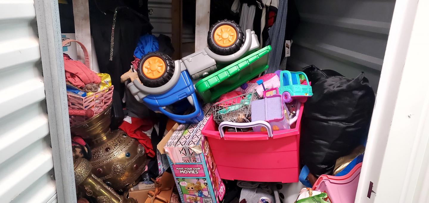 This unit appears to contain…Toys, Clothing, Household Items. Seal #2649123 REFUNDABLE CLEANING FEE: $50.00 - SEE MANAGER FOR DETAILS