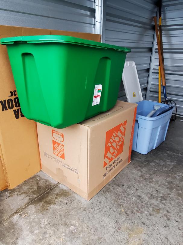 This unit appears to contain…Unit appears to contain, boxes, cabinet, totes.