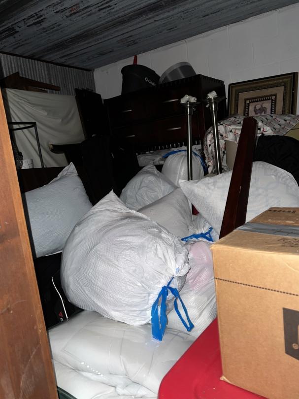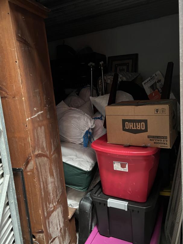 This unit appears to contain…Unit appears to contain, furniture, clothing, appliances, knickknacks, art, bedding.
