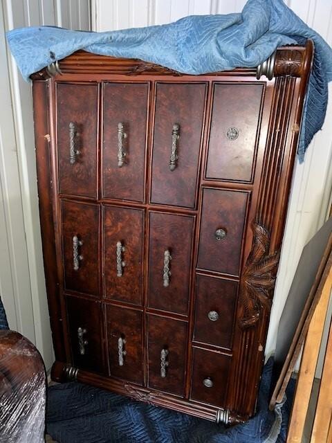 This unit appears to contain…Refrigerator, Music Equipment , Sink , Mirror, Bathroom Cabinet, Bed Frame , Dining Room Table, Chairs, Dressers