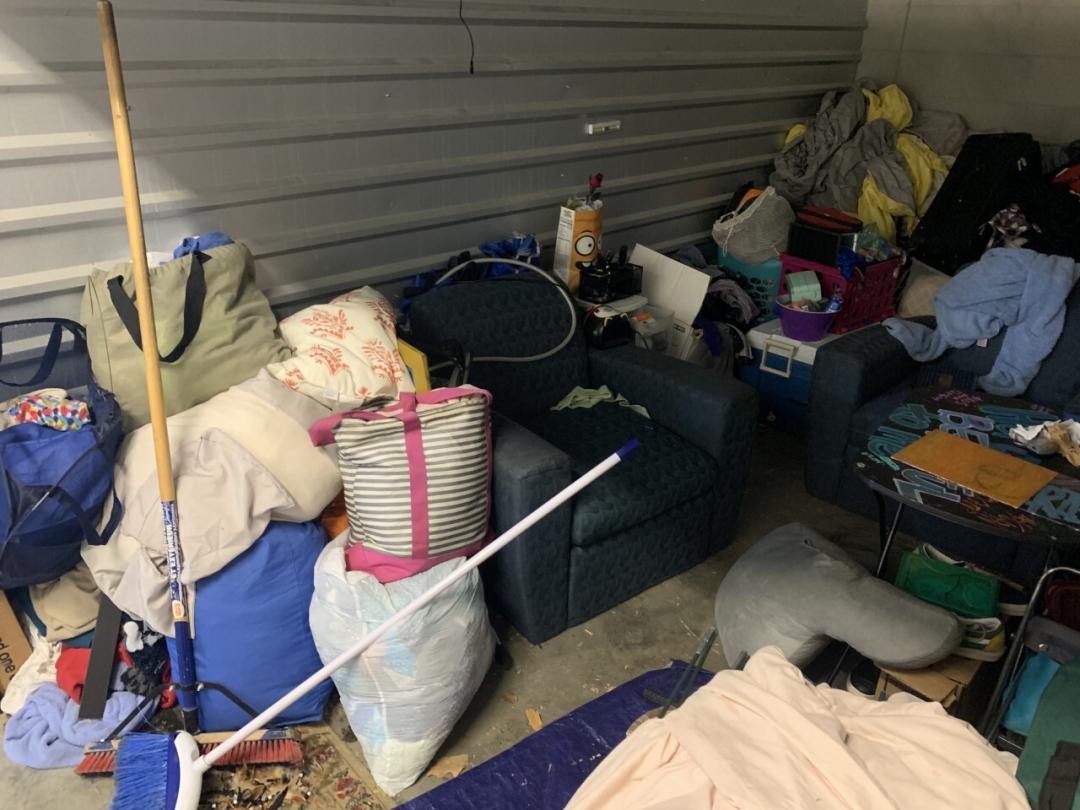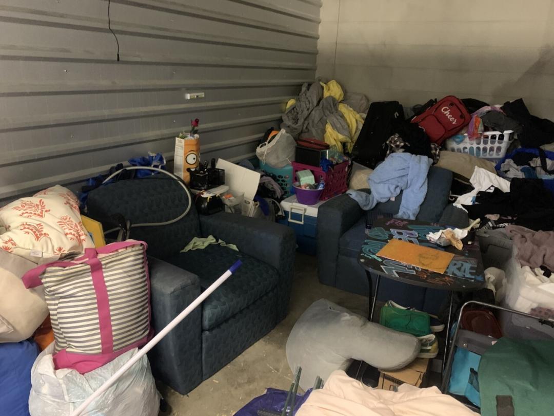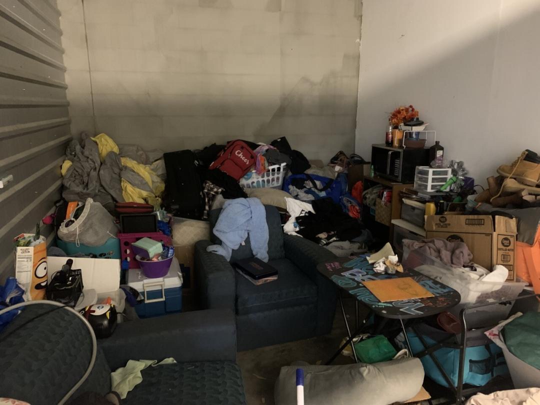 This unit appears to contain…Microwave,Couches,Chairs,Tables,Plastic Bags,Plastic Containers,Misc. Boxes,Clothing,Misc. Items,Suitcases,Laundry Baskets,Coolers,Bookbags,Vehicles not included in Sale
