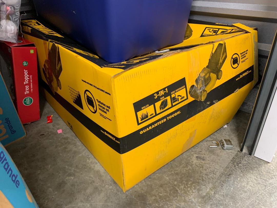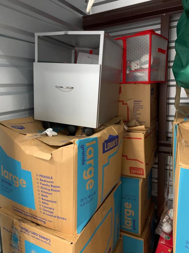 This unit appears to contain…Boxes, Christmas tree, File cabinet, Totes