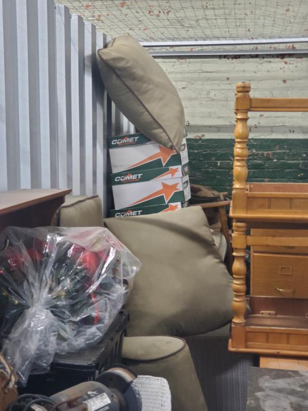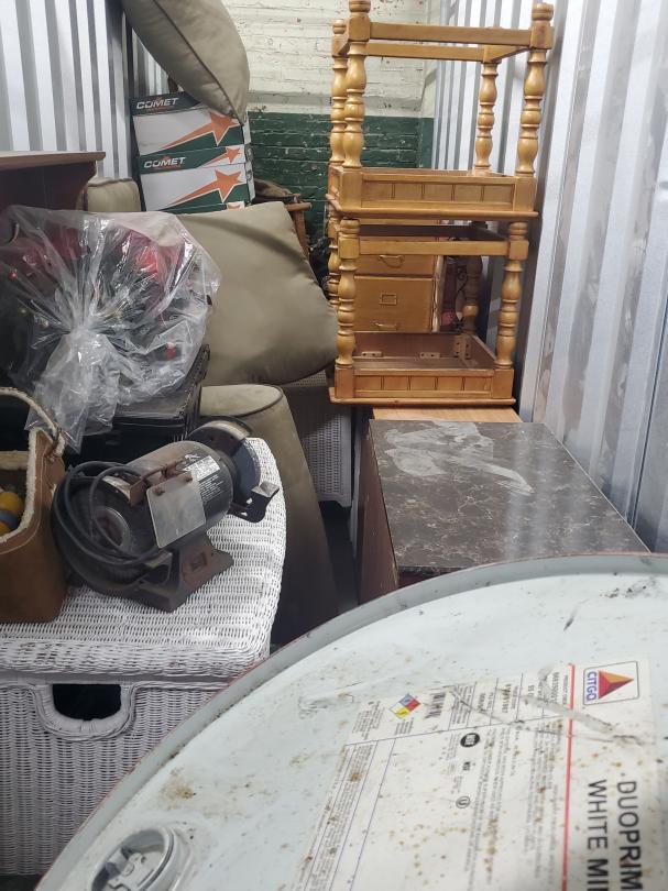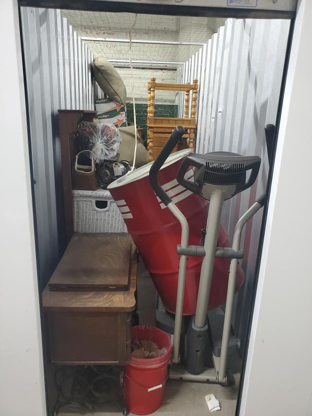 This unit appears to contain…Tools,Power Tools,Filing Cabinets,Couches,Dressers or Armoire,Tables,Plastic Bags,Plastic Containers,Misc. Boxes,Misc. Items,Exercising Equip.,Chests