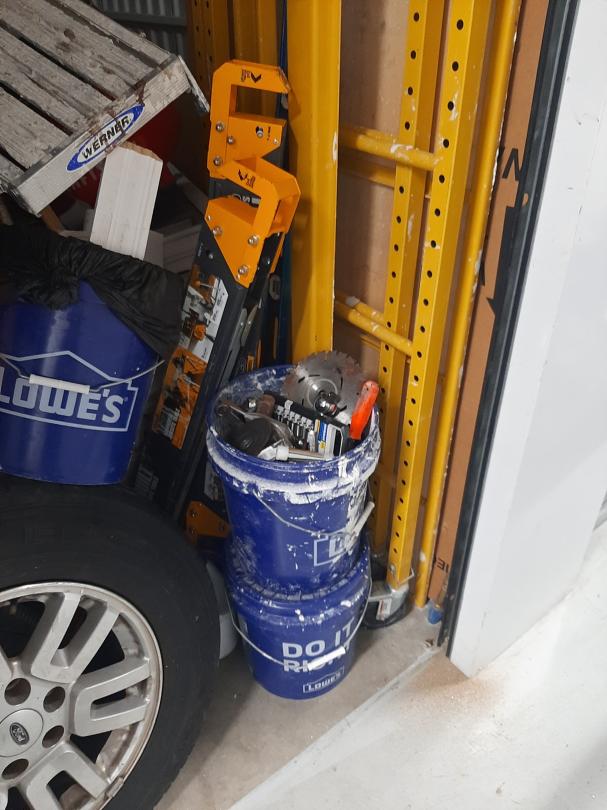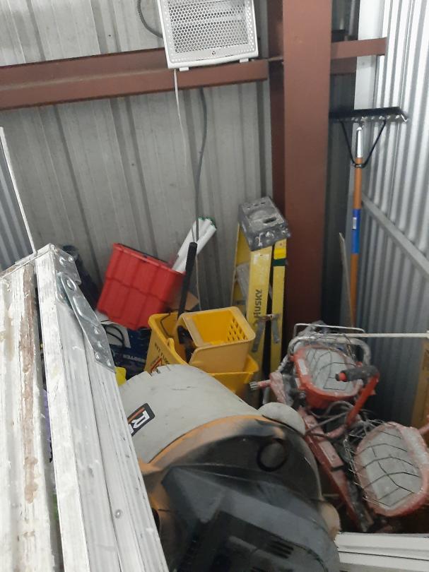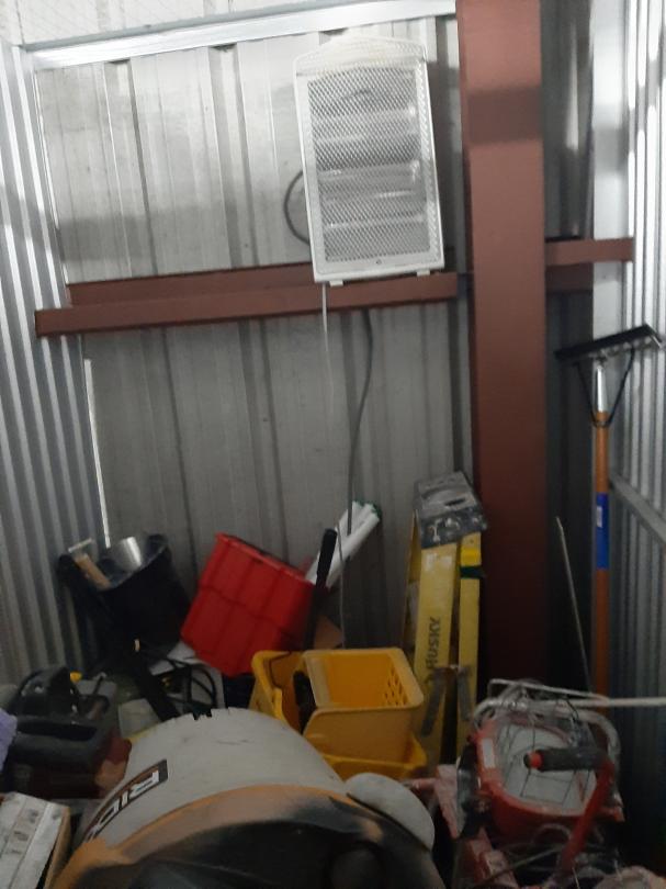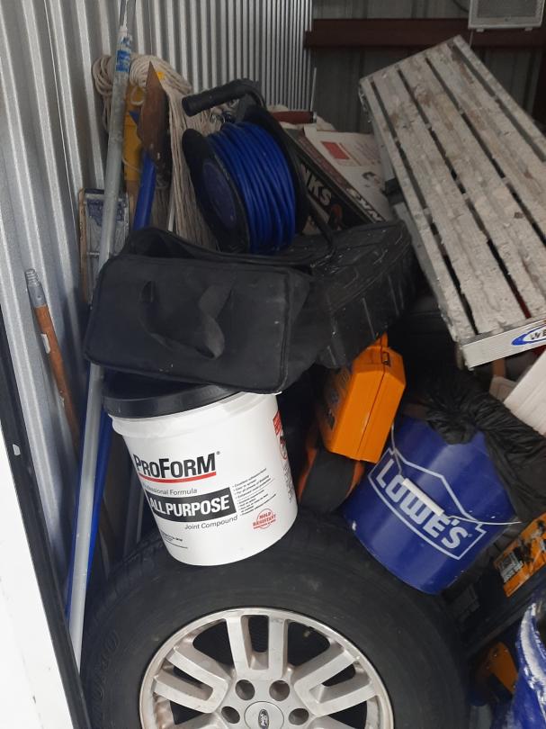 This unit appears to contain…5X10X8UL Tools, Tires, Rims, Scuffling, 5 Gallon Bucket, Heater, Ladder, Work Lights, Air Compressor, Ice Chest