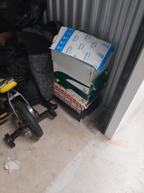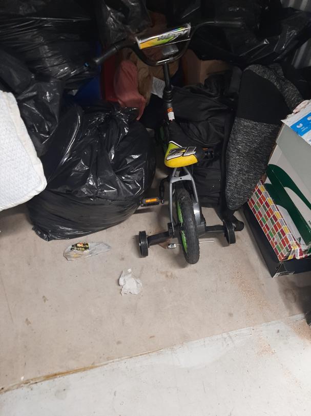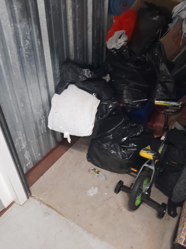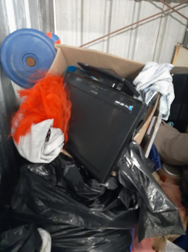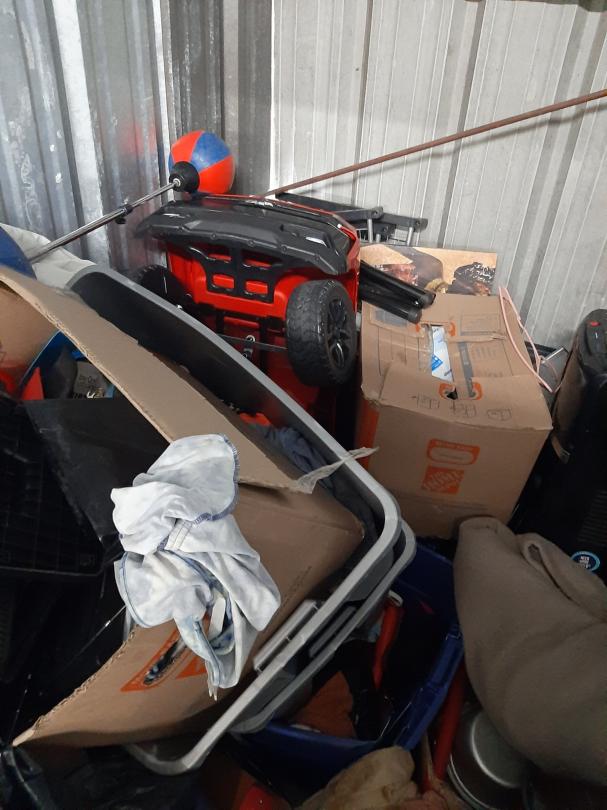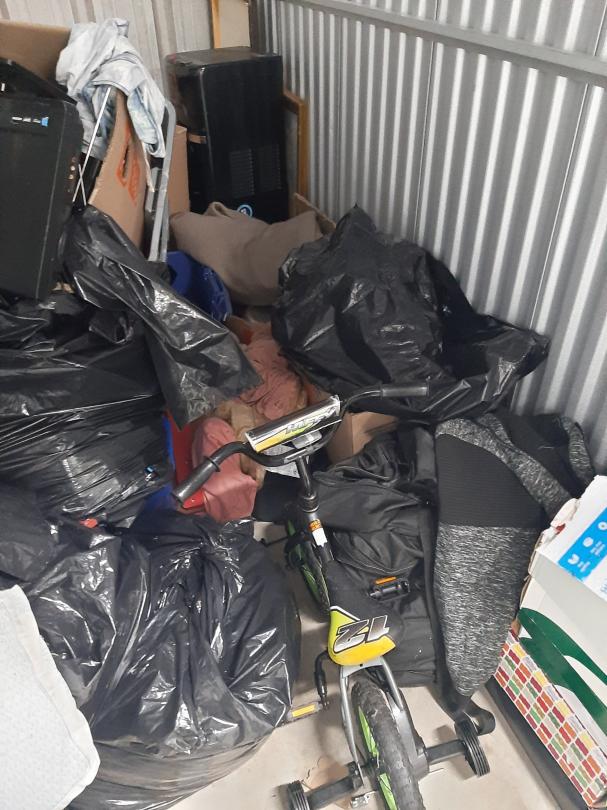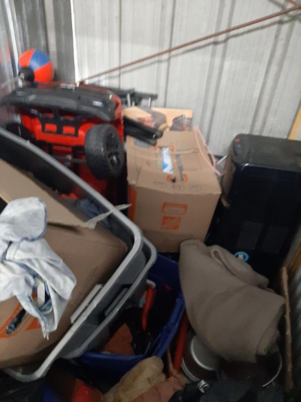 This unit appears to contain…5X10X8UL Bags, Boxes, Toys, Kids Bike, Shoes, Toy Car, Punching Bag, Totes, Painting, Household Goods, Pillows , Motor