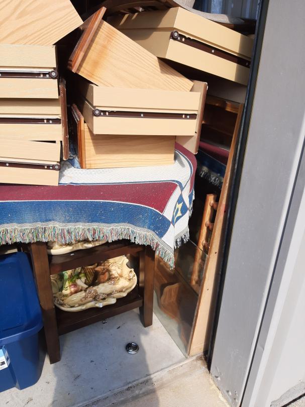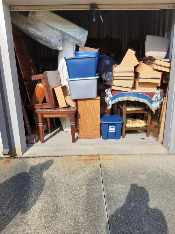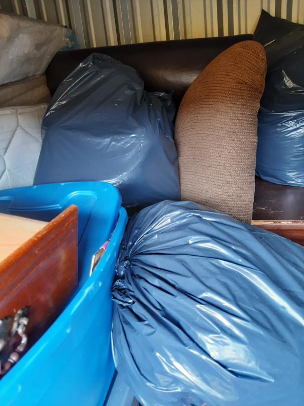 This unit appears to contain…10X10X8 Bike, Chair, Dresser, Headboard, Mattress, Totes, Exercise Machine, Sofa