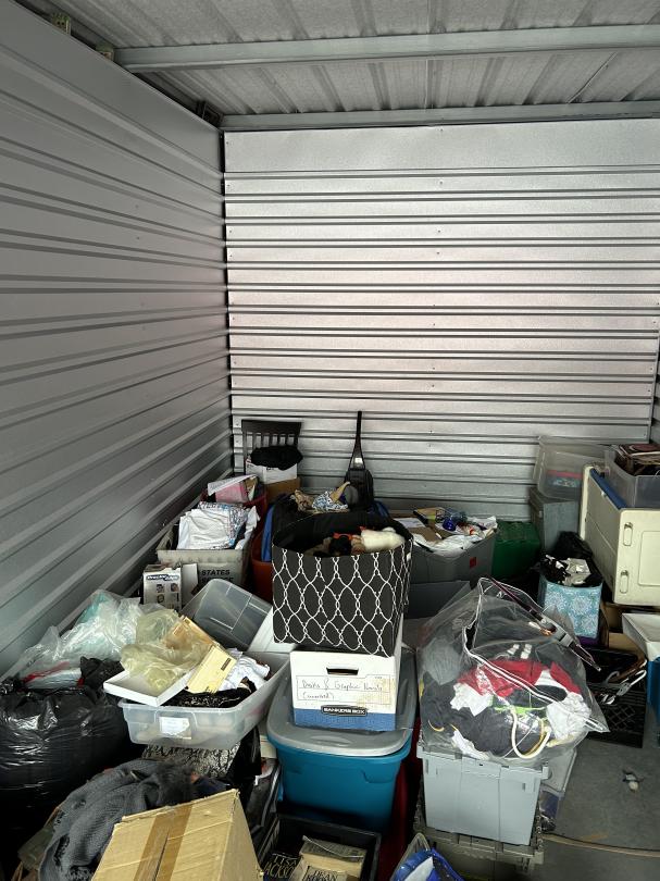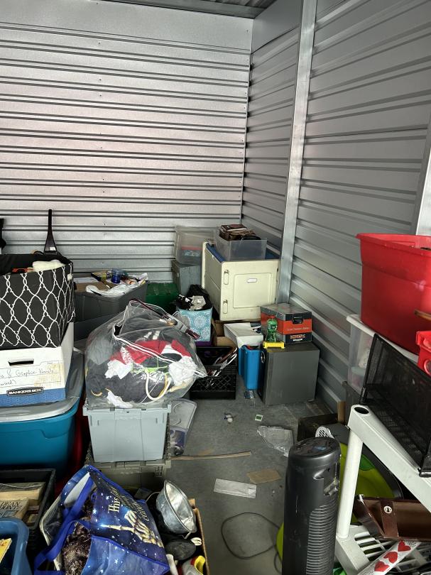 This unit appears to contain…Unit appears to contain household goods, totes,and clothes.