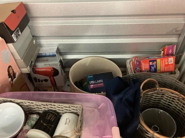 This unit appears to contain…BOXES, BASKETS, PLASTIC TOTES, GAMES, CANDLES, TRASH BAGS, SHOE BOXES