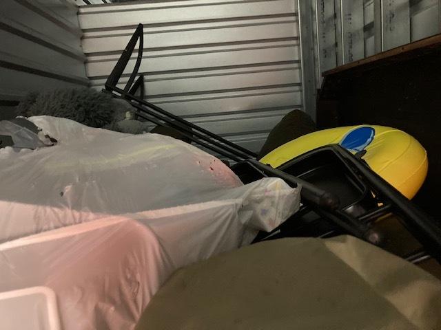 This unit appears to contain…cushions, side table, tv, boxes, bags, innertube, table