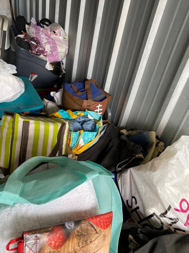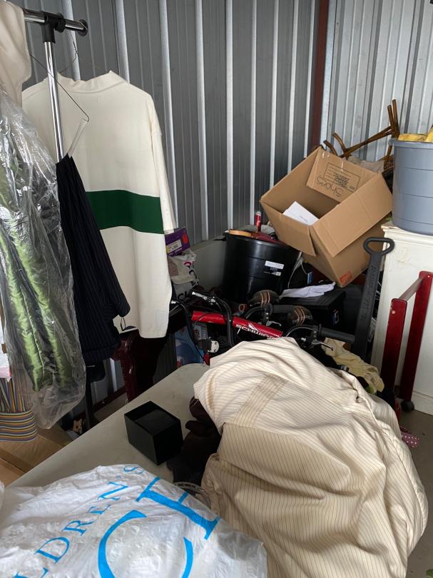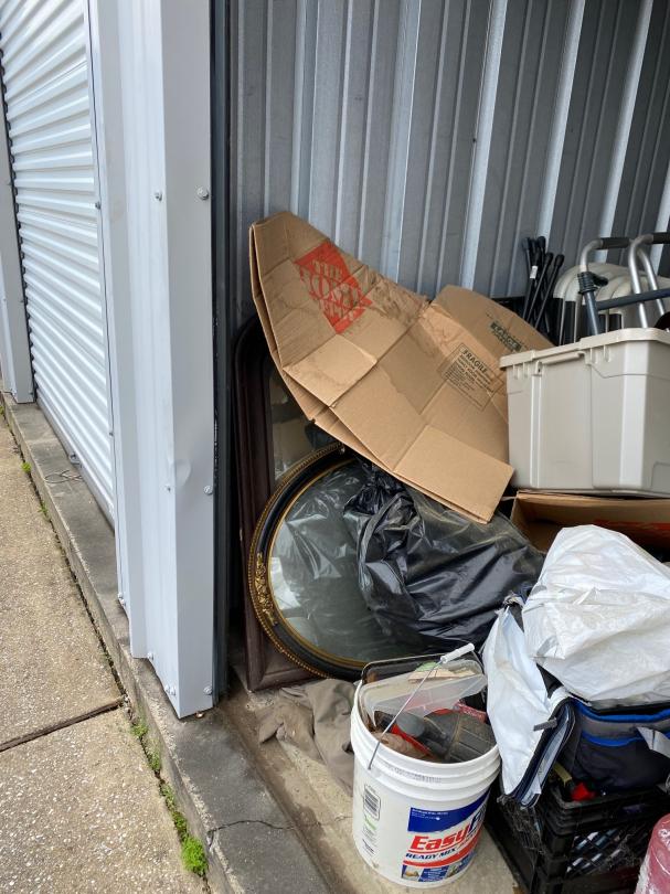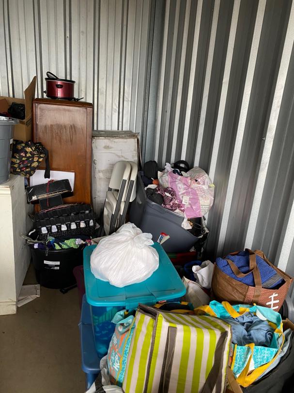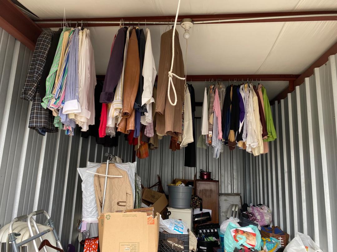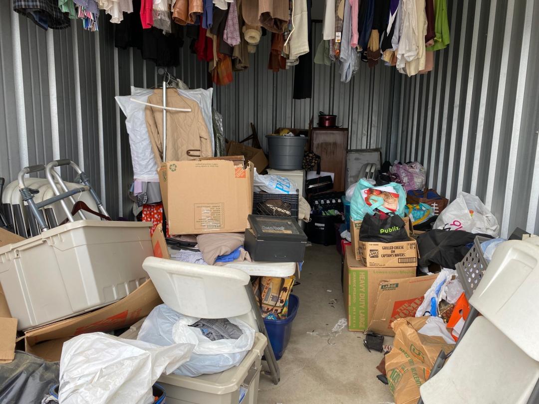 This unit appears to contain…clothes, shoes, bikes, folding furniture, mirrors