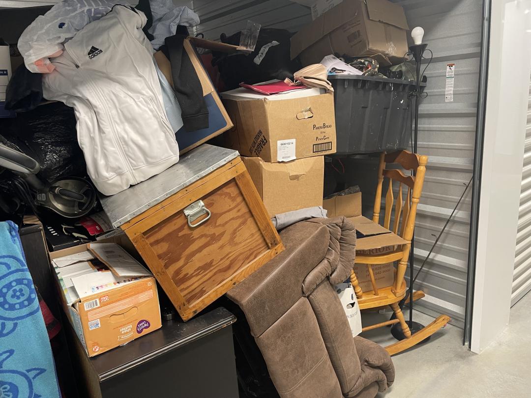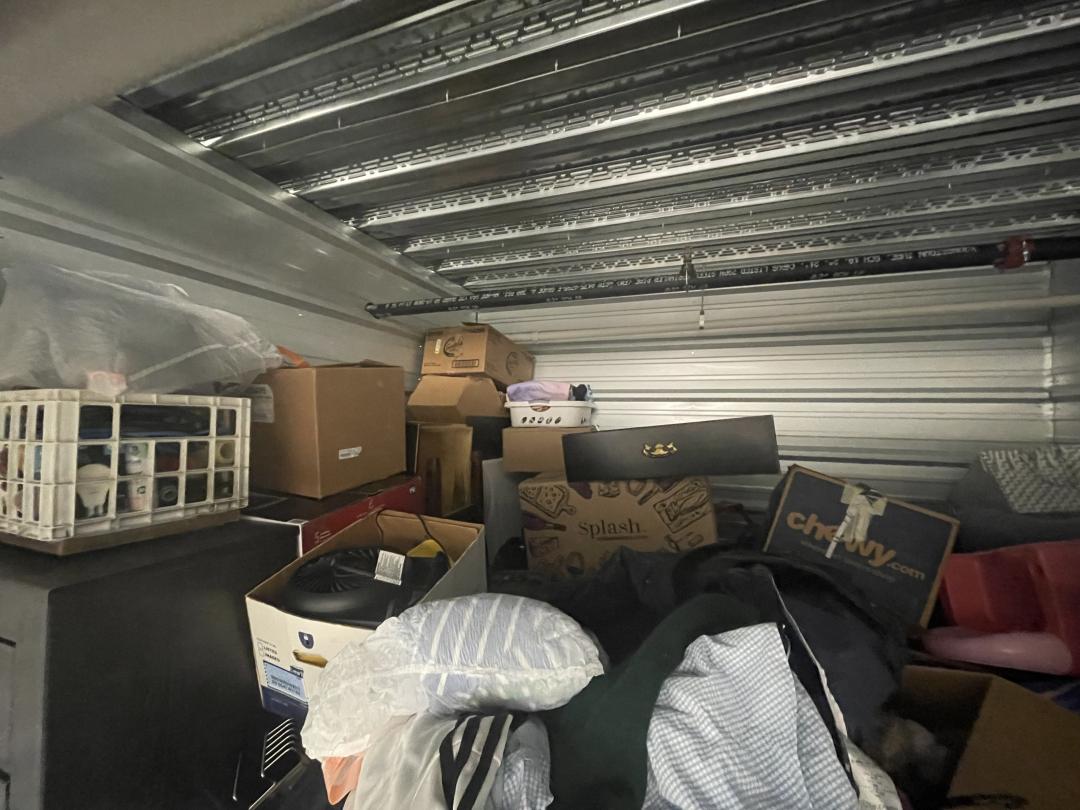 This unit appears to contain…Bags, Boxes, Chair, Clothing, Couch/Sofa, Dresser, Lamp, Vacuum,