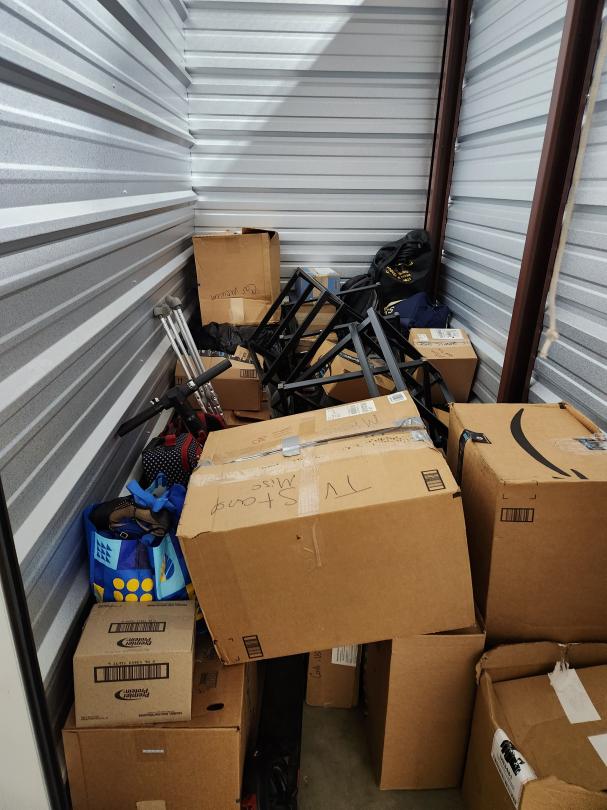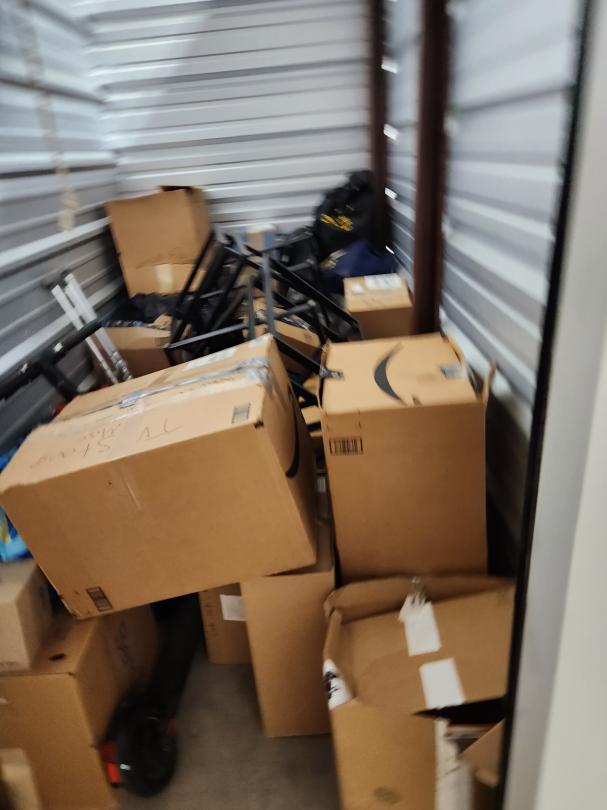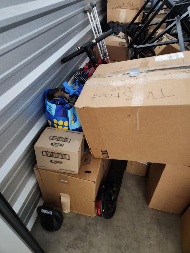 This unit appears to contain…BOXES, TABLES, SCOOTER