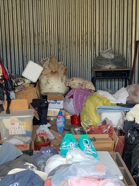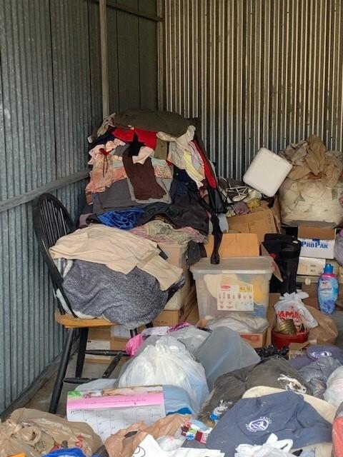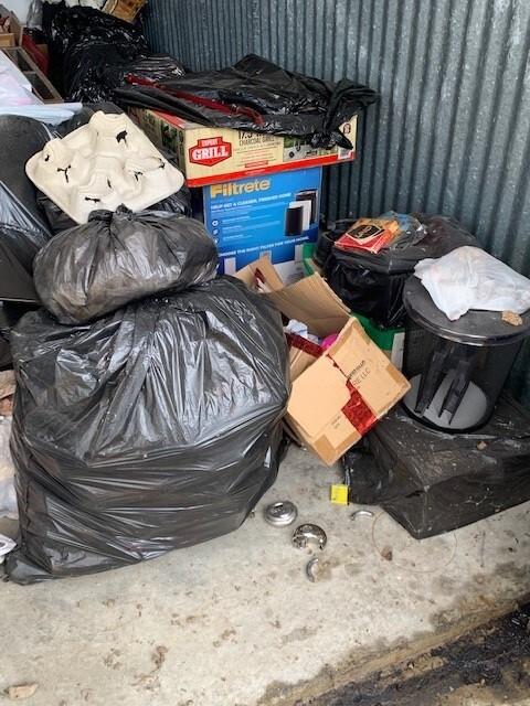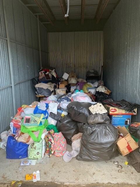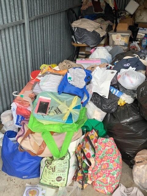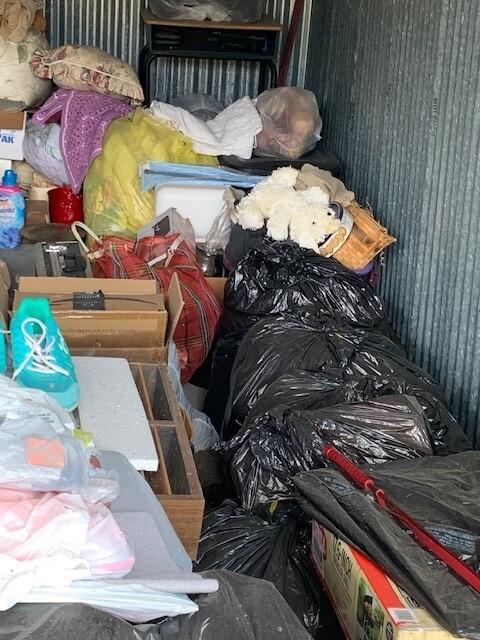 This unit appears to contain…BAGS, BOXES, CLOTHES, CHAIR, DESK, HOUSEHOLD GOODS, SHOES AND BRIEFCASE