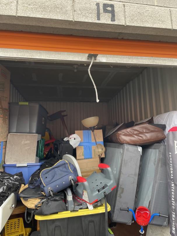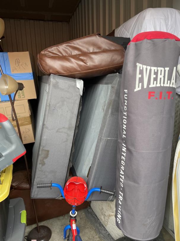 This unit appears to contain…Unit appears to contain, bed, totes, dresser, boxes, punching bag, kids toys, kids furniture