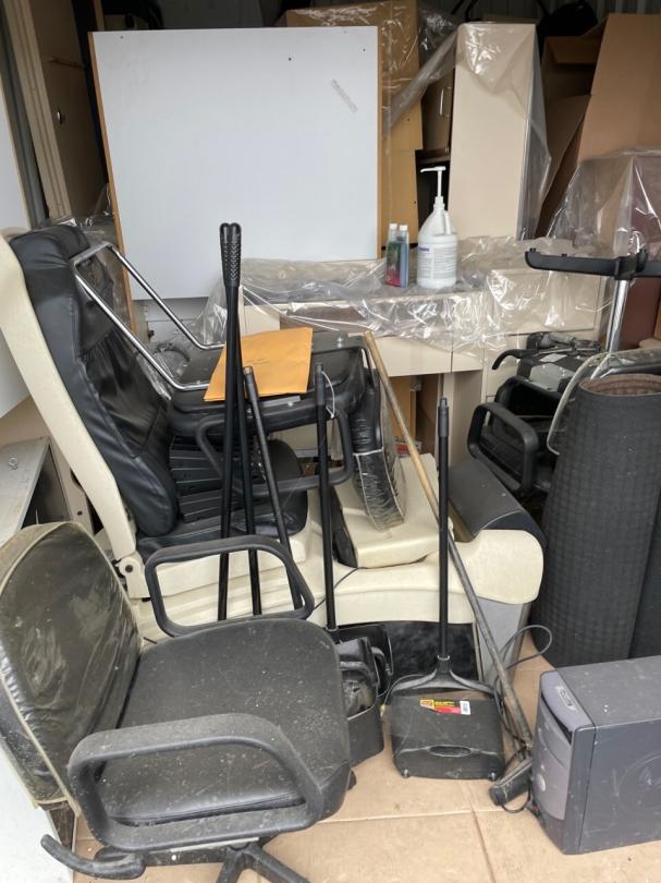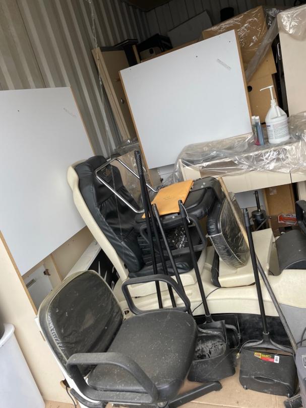 This unit appears to contain…Unit appears to contain, desk, chairs, shelving, office furniture, computer