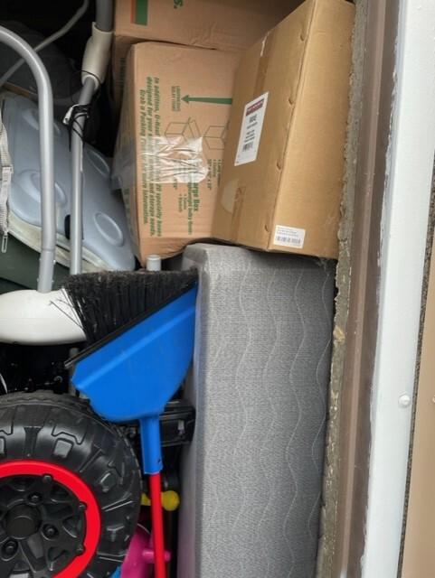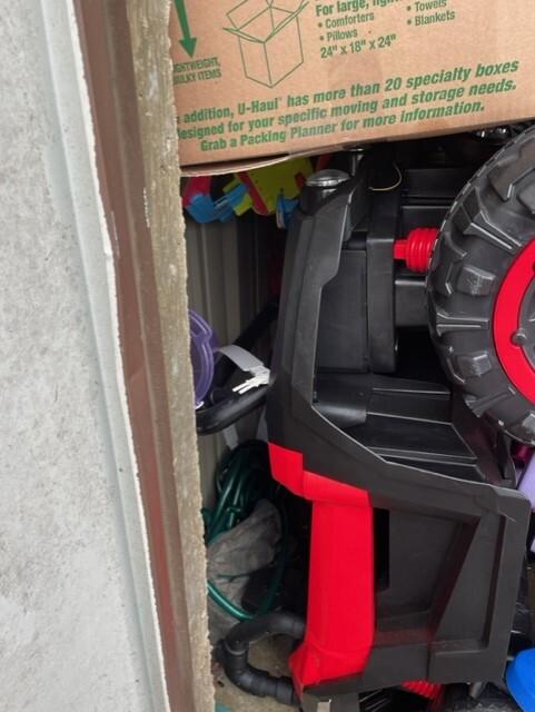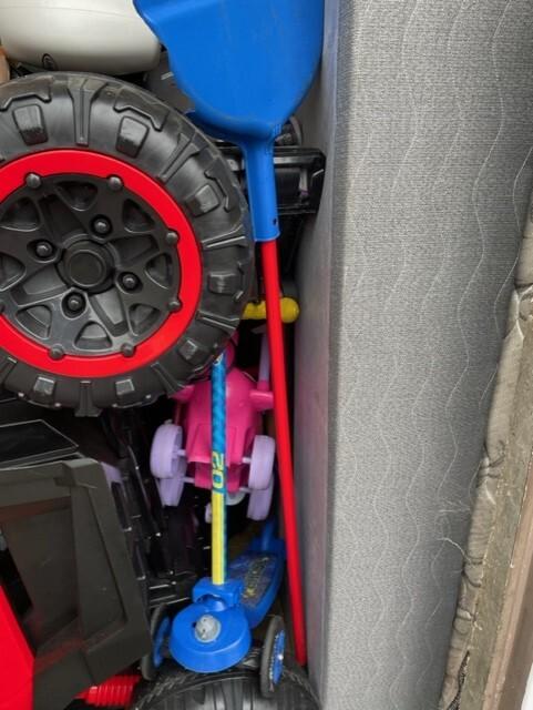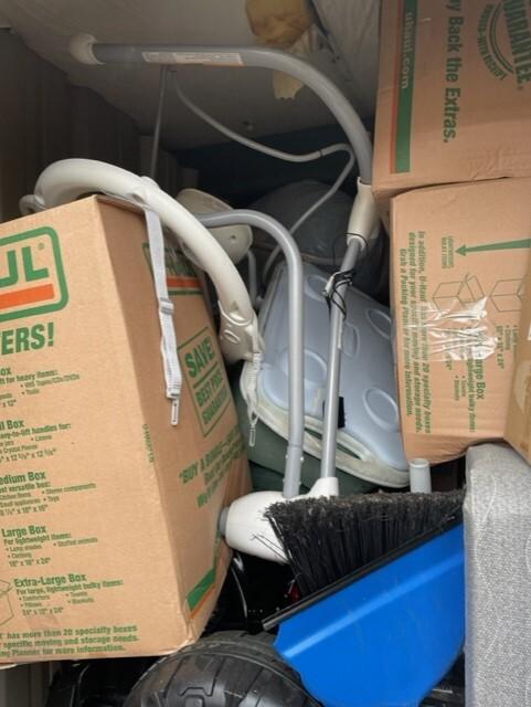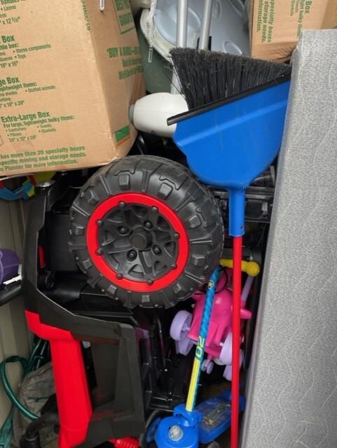 This unit appears to contain…Mattresses,Misc. Boxes,Toys,Vehicles not included in Sale