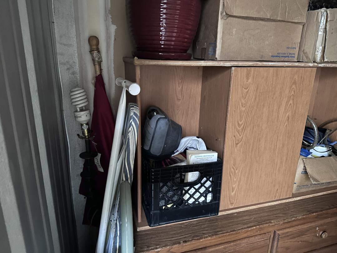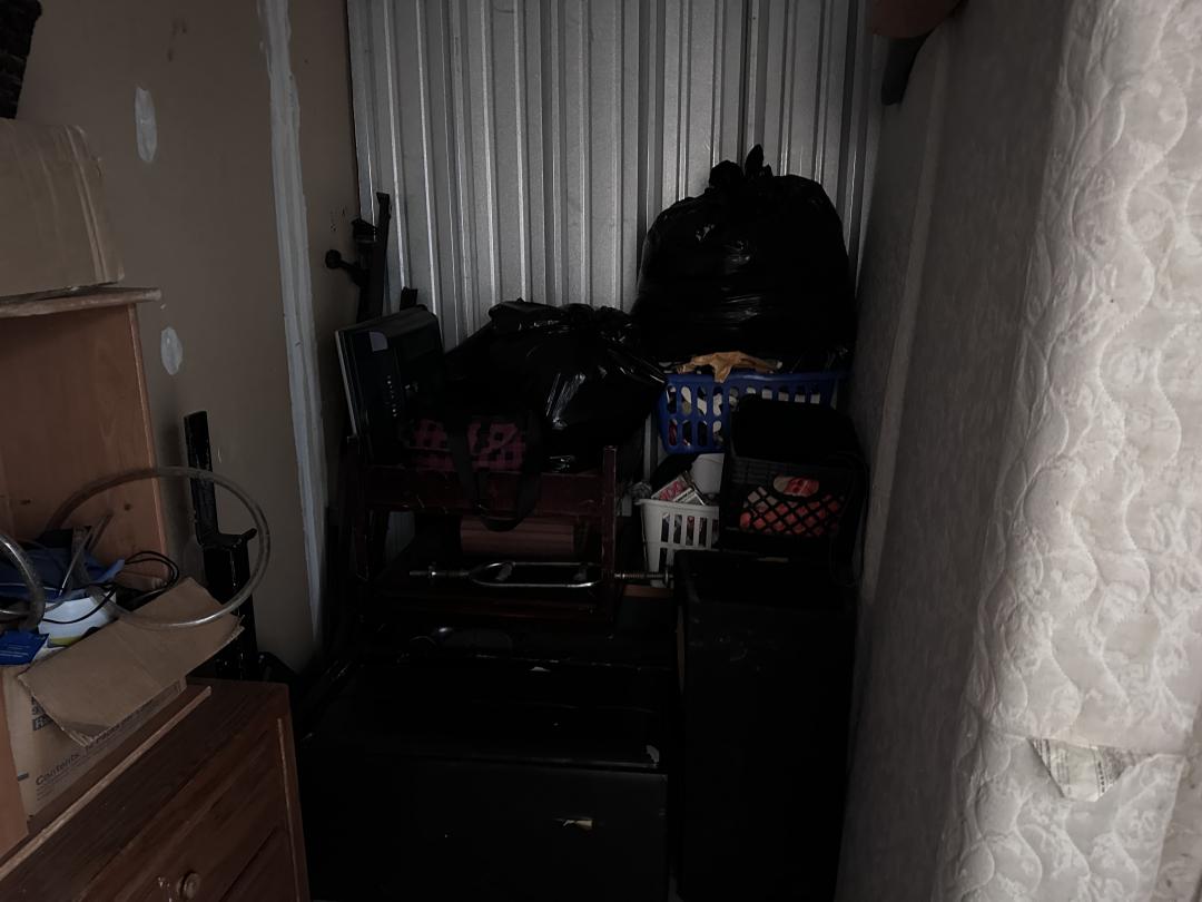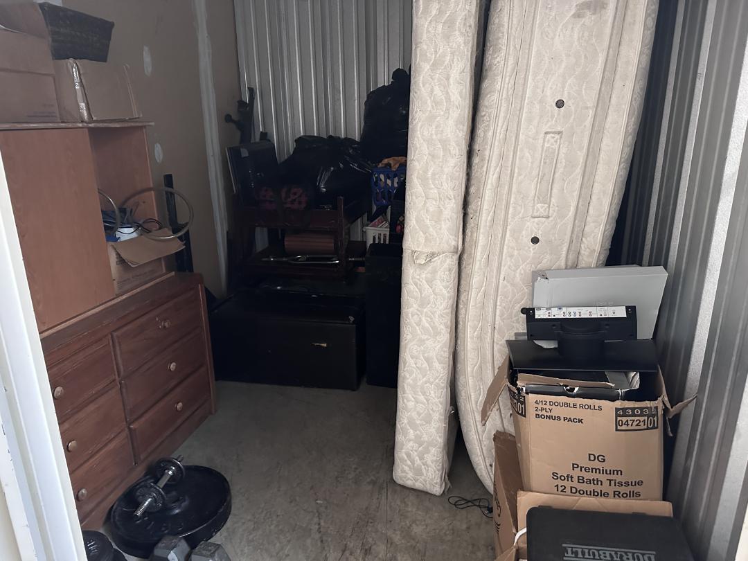 This unit appears to contain…TV,Mattresses,Box Springs,Bed Frame,Dressers or Armoire,Lamps,Chairs,Tables,Decor,Ironing Board,Plastic Bags,Misc. Boxes,Clothing,Misc. Items,Exercising Equip.,Laundry Baskets,Bookbags