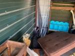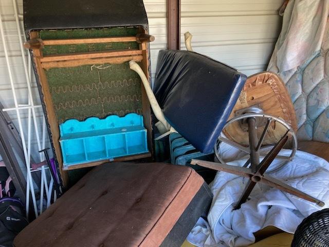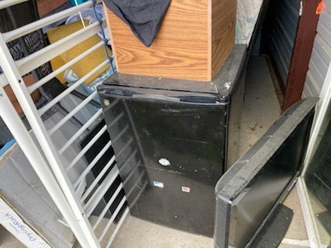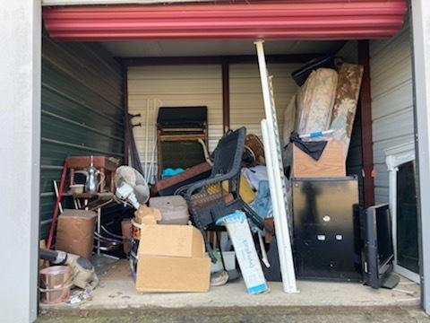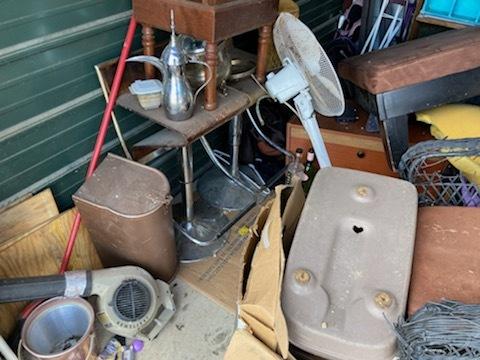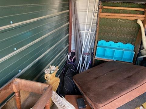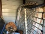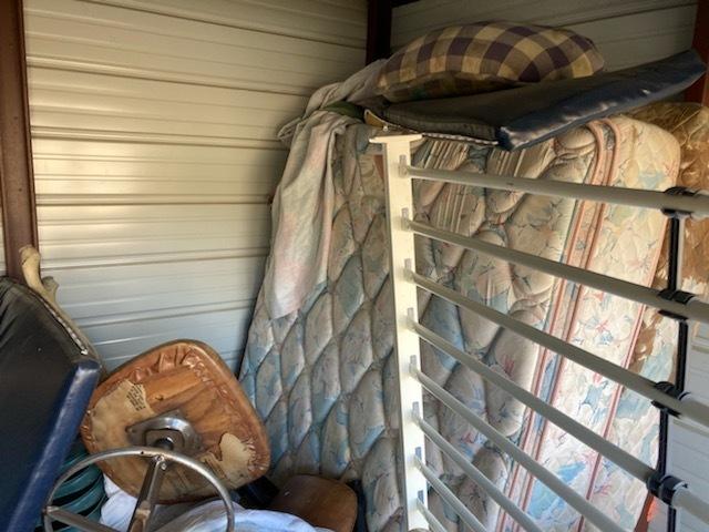 This unit appears to contain…mini fridge, various pieces of furniture, mattresses, bed, stand-up fan, mailbox, hand-held blower and more.