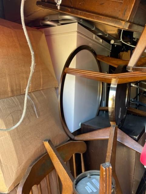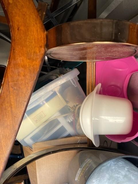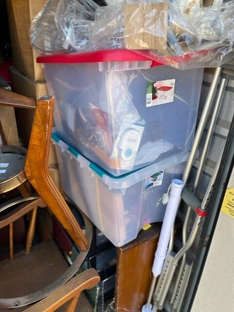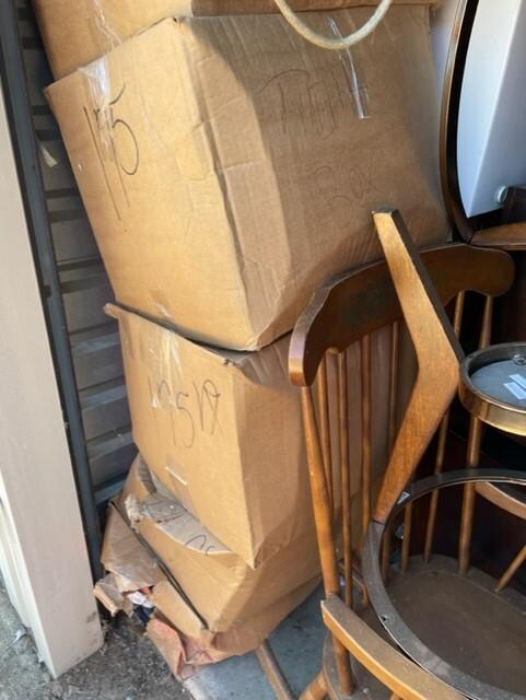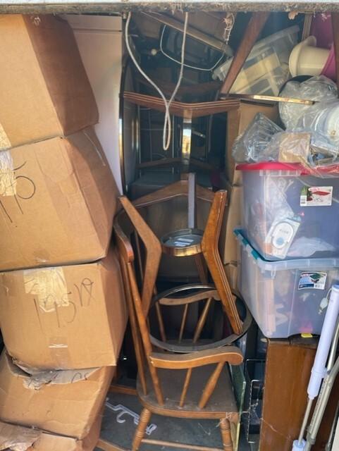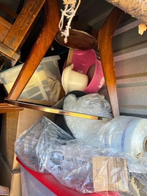 This unit appears to contain…Chairs,Plastic Bags,Plastic Containers,Misc. Boxes,Misc. Items