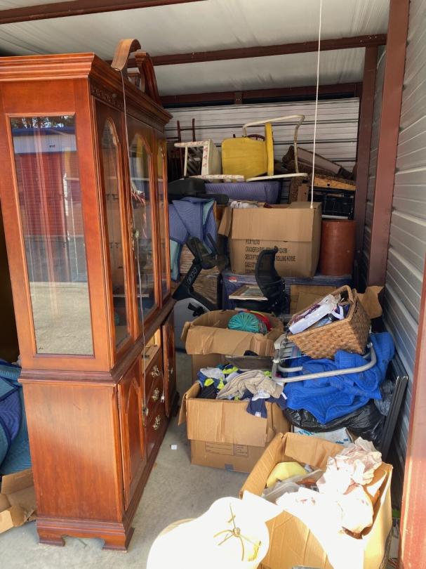 This unit appears to contain…furniture, boxes, china cabinet, weights