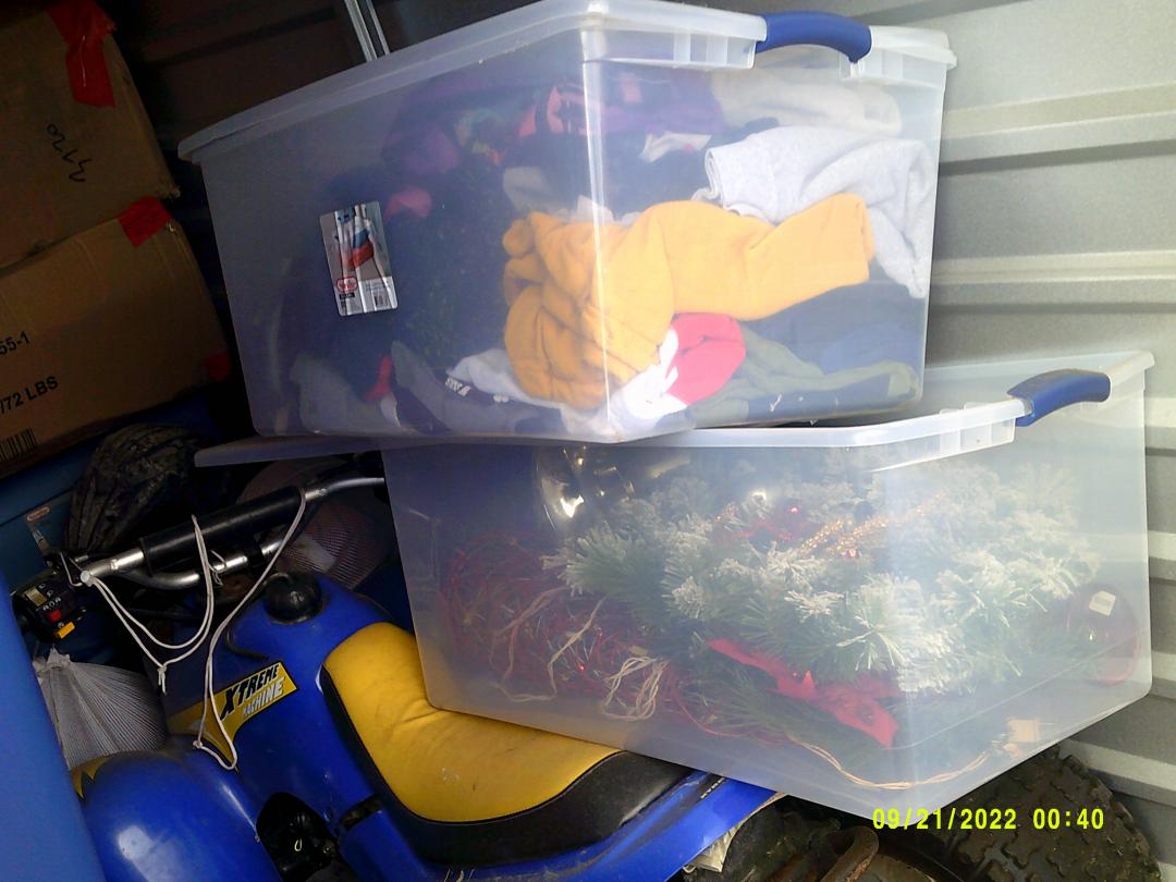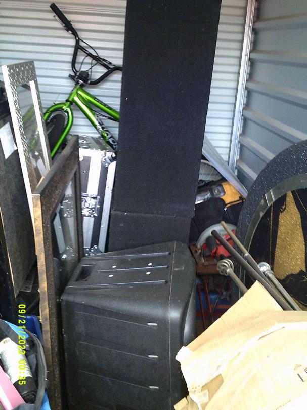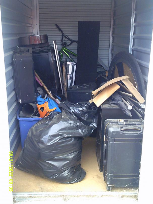 This unit appears to contain…READ ALL AUCTION RULES BEFORE BIDDING!!! Unit appears to contain: Totes, bags, boxes, clothing, x mas decor, helmet, bike, sound gear, power tools, suitcases, coffee table, end table