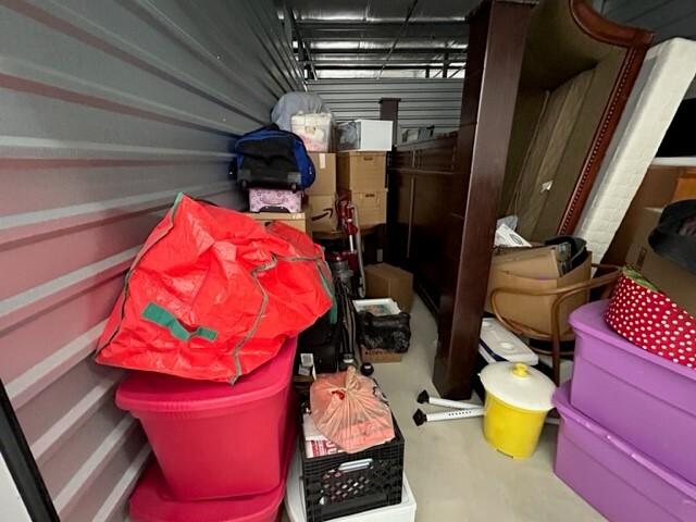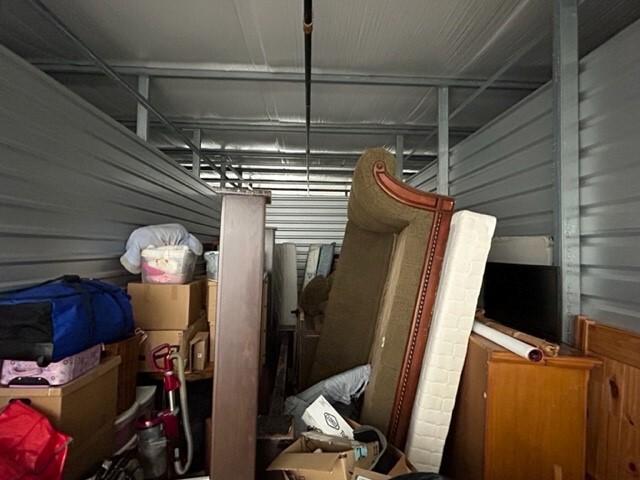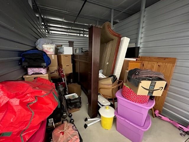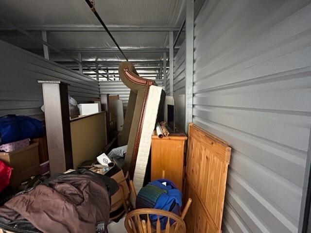 This unit appears to contain…TV,Mattresses,Box Springs,Bed Frame,Dressers or Armoire,Chairs,Tables,Decor,Plastic Bags,Plastic Containers,Misc. Boxes,Clothing,Misc. Items,Exercising Equip.,Suitcases,Cleaning Supplies,Artwork