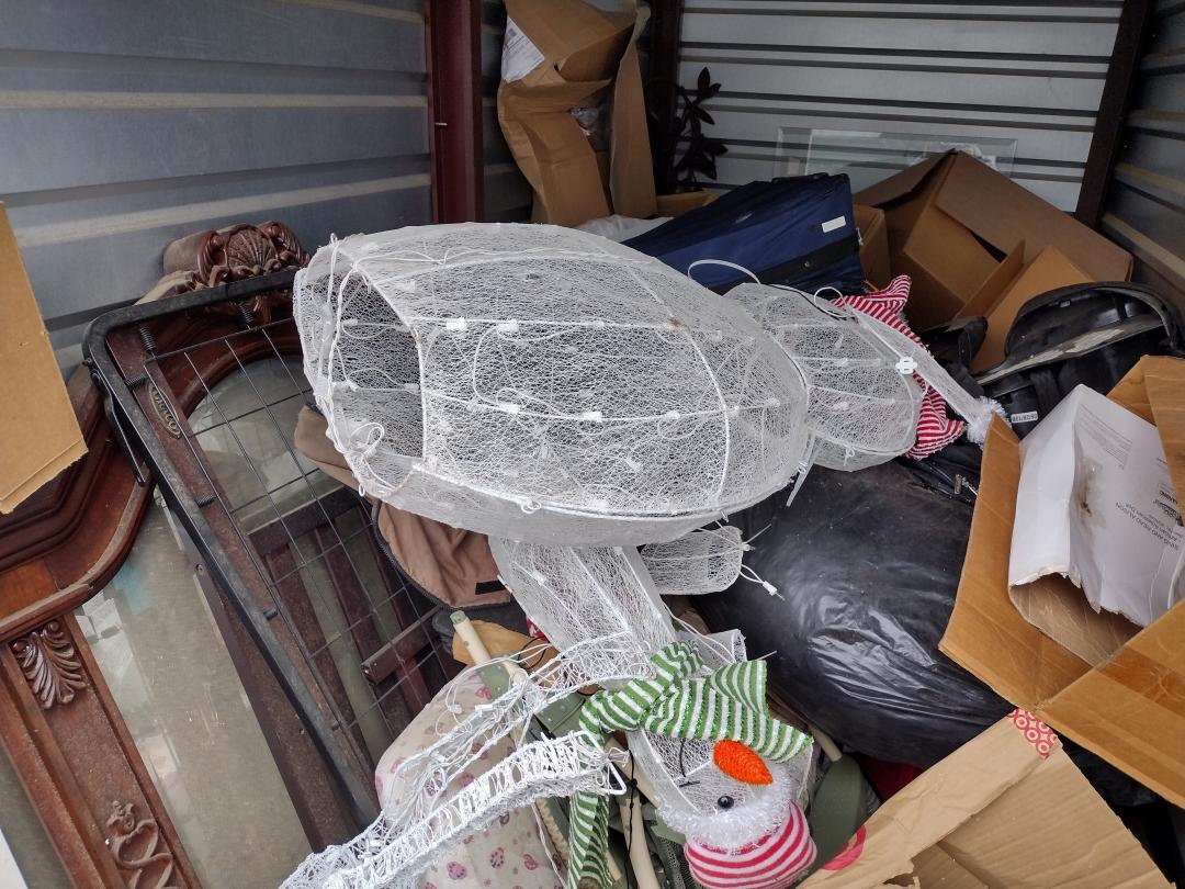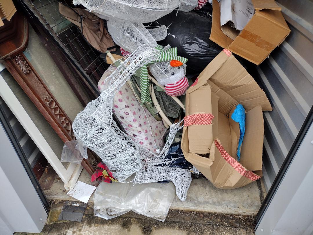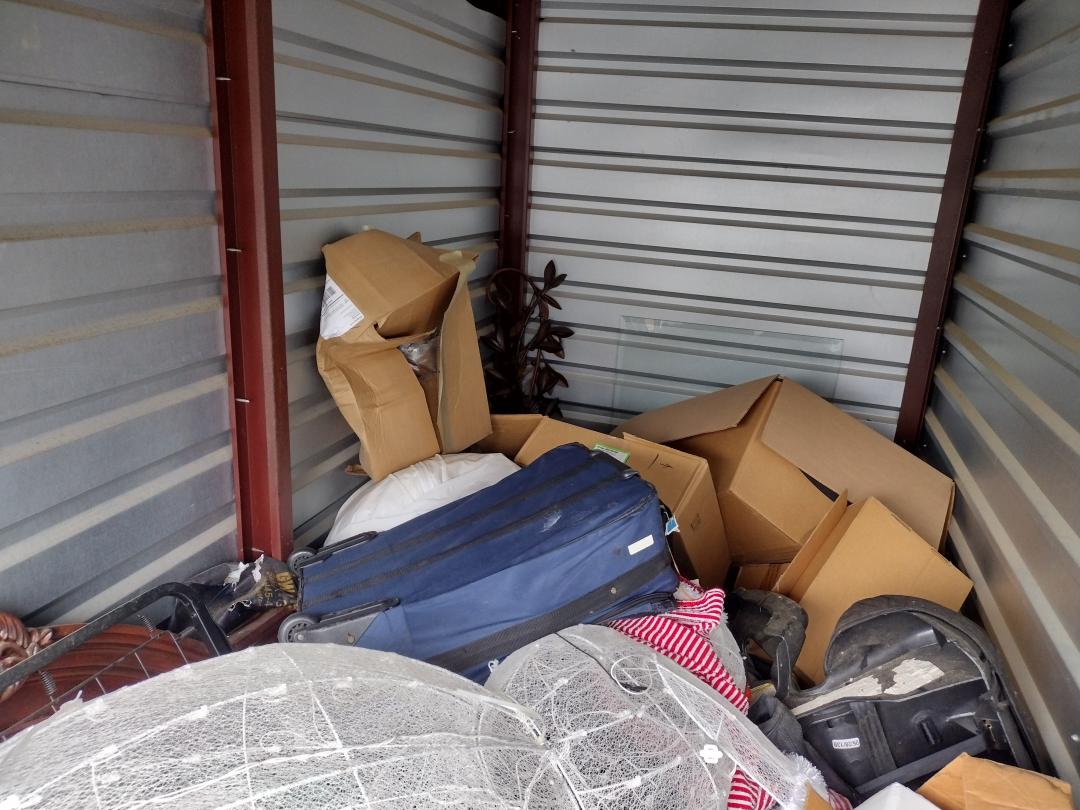 This unit appears to contain…Boxes, mirrors, mattress, Christmas decorations, luggage, household items.