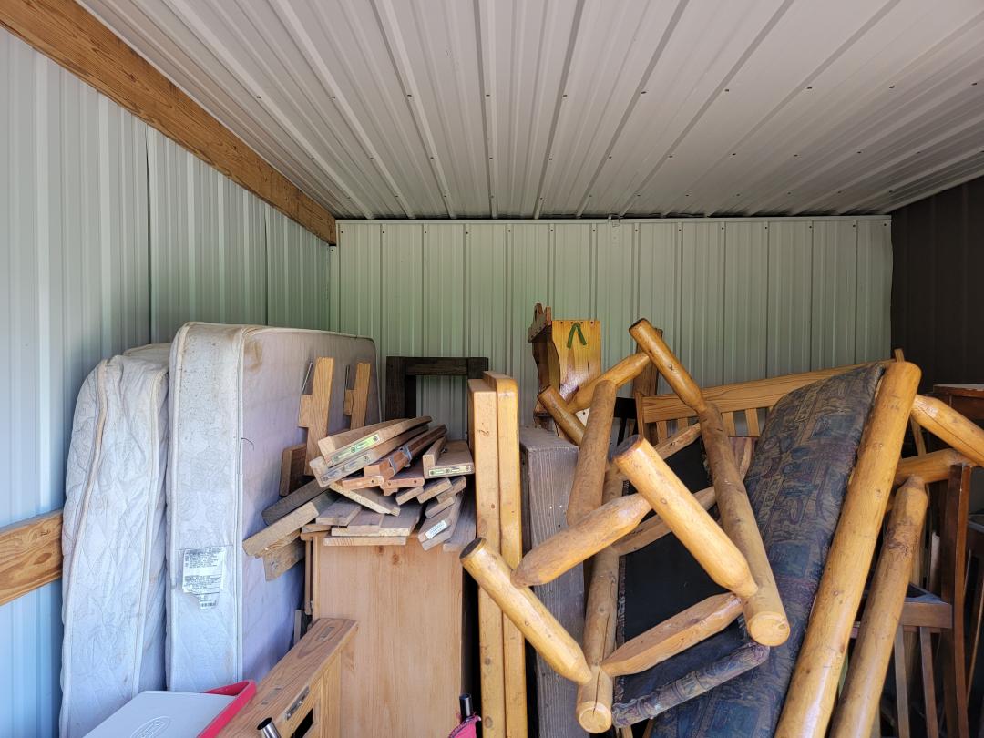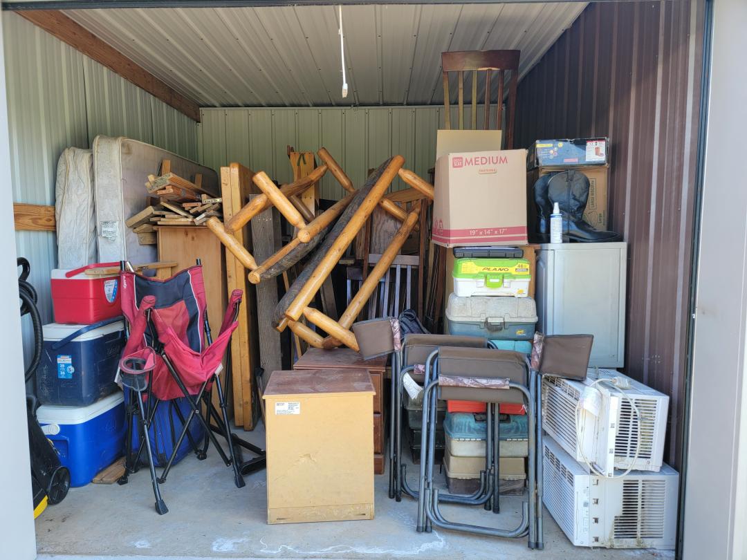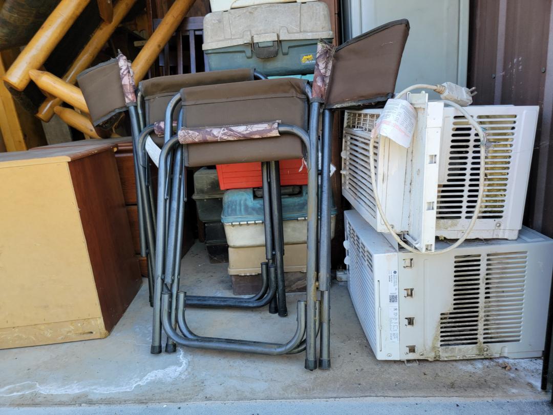 This unit appears to contain…Unit contains furniture, window air conditioning units, indoor and outdoor furniture, tackle boxes, and ice chests.