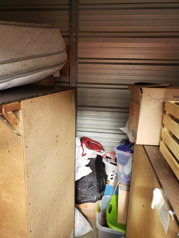 This unit appears to contain…Mattresses,Box Springs,Bed Frame,Dressers or Armoire,Chairs,Plastic Bags,Misc. Boxes,Chests