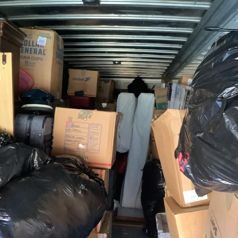 This unit appears to contain…Boxes, bags, mattress, box spring, luggage, bed rails spring