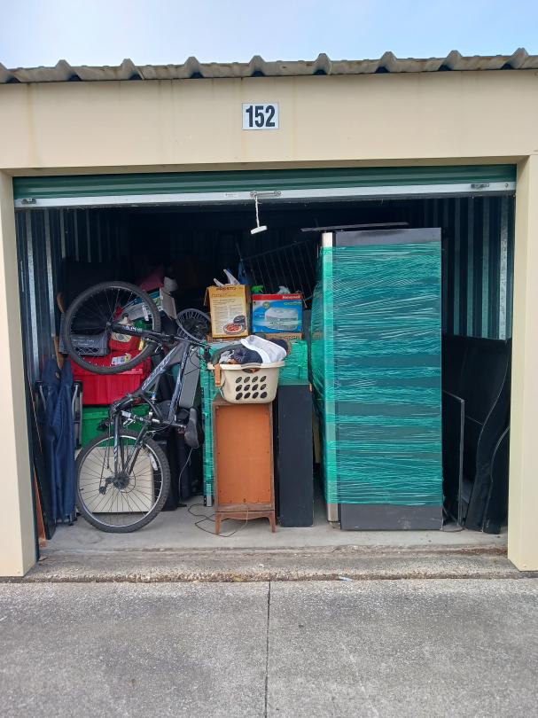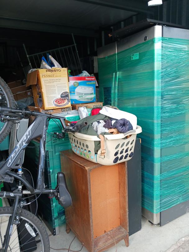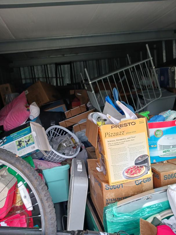 This unit appears to contain…10x15 unit containing a bike, refrigerator, appliances, furniture, & boxes