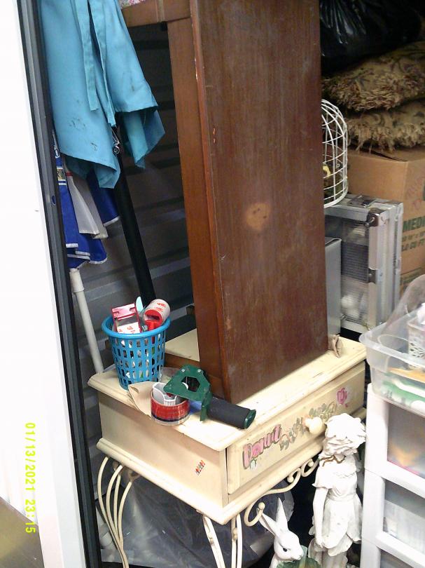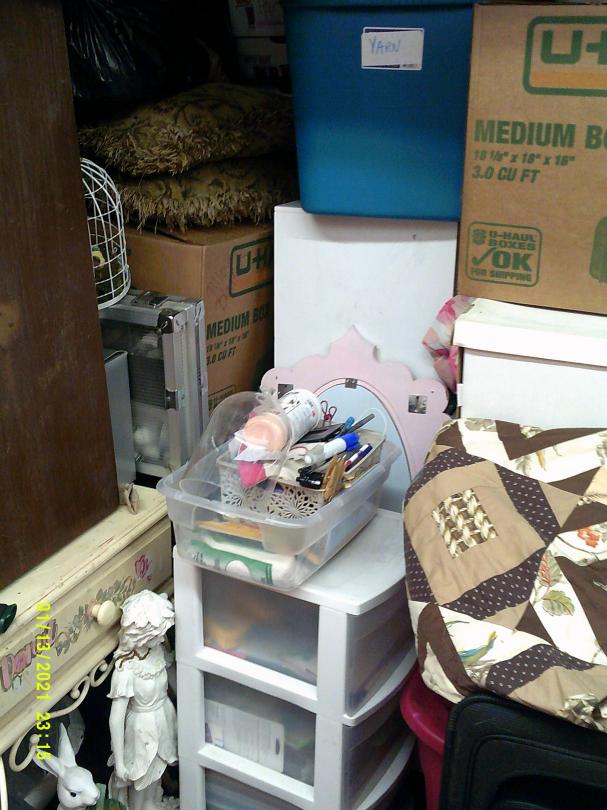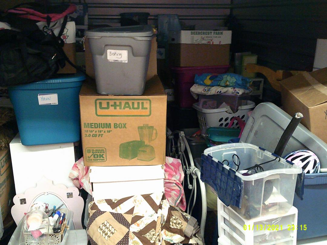 This unit appears to contain…READ ALL AUCTION RULES BEFORE BIDDING!!! Unit appears to contain: Plastic organizers, boxes, bags, totes, arts and craft supplies, table, chairs, art decor, suitcases, end table, toaster oven