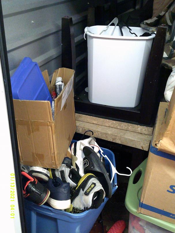 This unit appears to contain…READ ALL AUCTION RULES BEFORE BIDDING!!! Unit appears to contain: Totes, bags, boxes, couch, shoes, clothing, flat screen