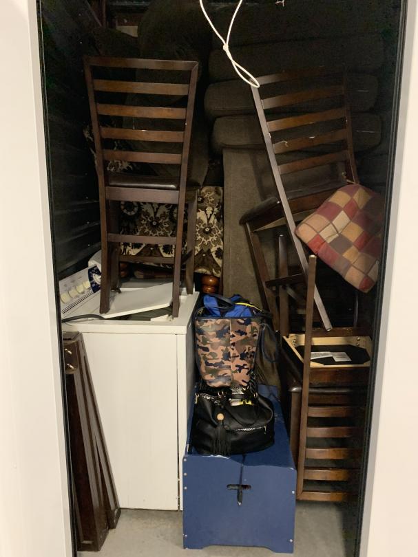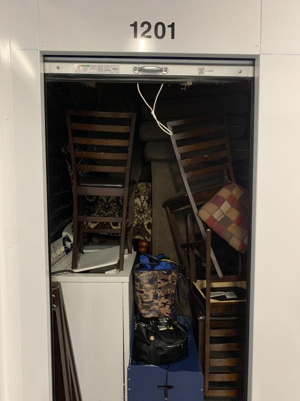 This unit appears to contain…Washing Machines; Dryer; Chairs; Couches; Purses;