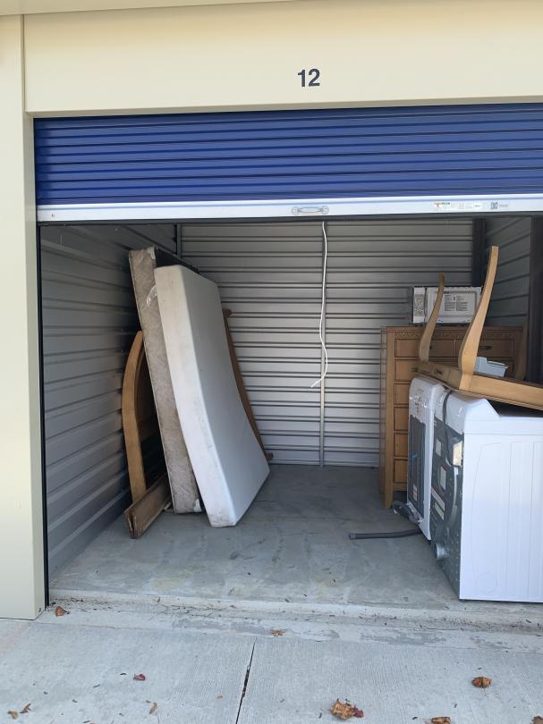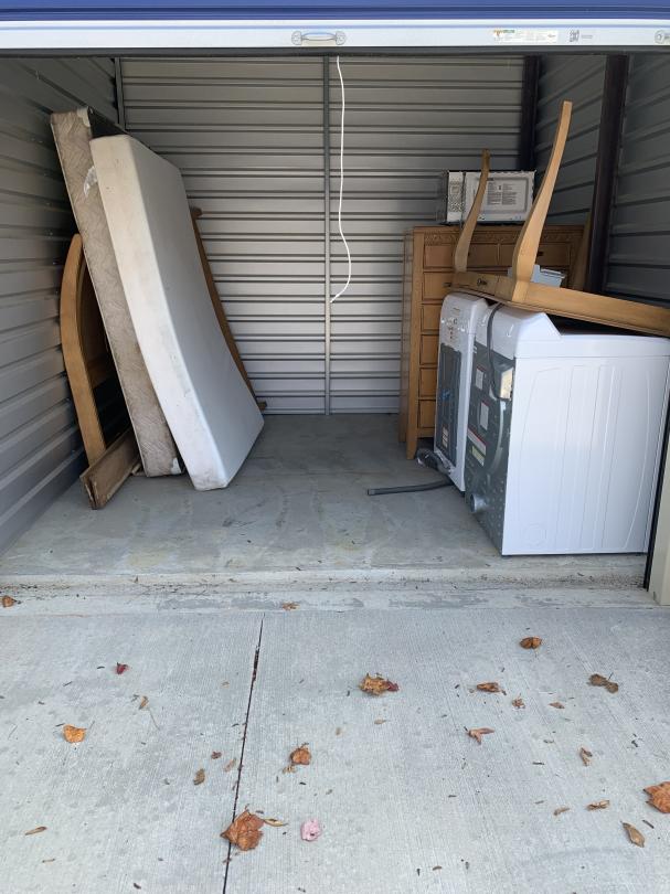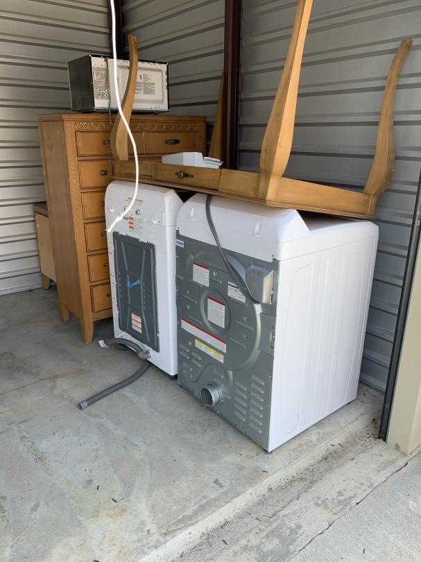 This unit appears to contain…Washing machines; dryers; microwaves; mattresses; bed frame; dresser; tables; night stand