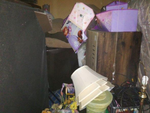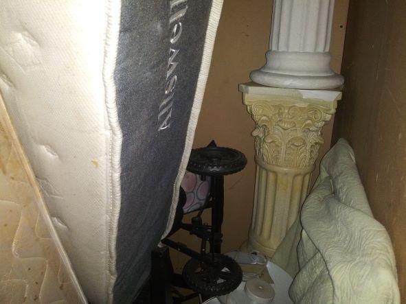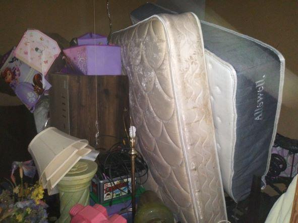 This unit appears to contain…Unit appears to contain: mattresses, box springs, bed frame, lamps, sofas, luggage, vase, chest, decor, toys, electronics, bed rails