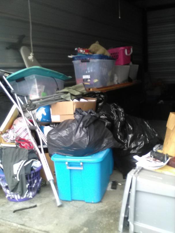 This unit appears to contain…Outside, 1st floor-BED, CLOTHES, BOXES, BAGS, TOTES, TOYS, DRESSER, HOUSEHOLD GOODS