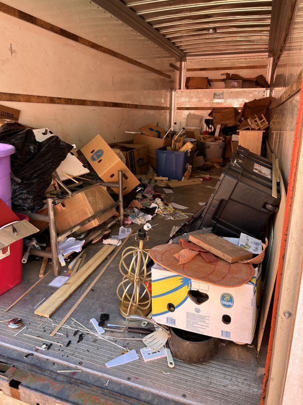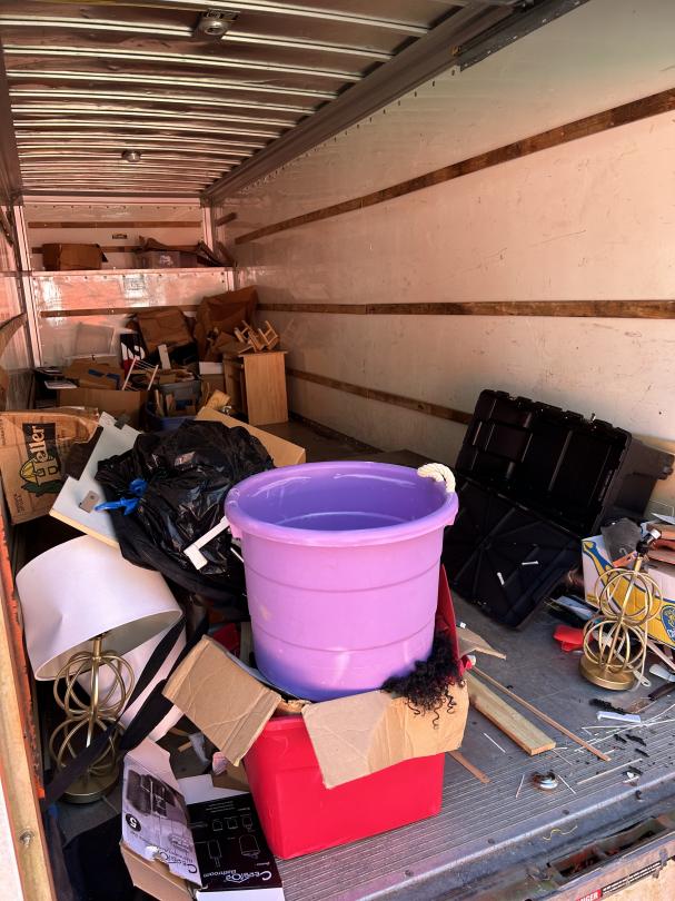 This unit appears to contain…Totes, lamps, wood furniture, boxes, MISC