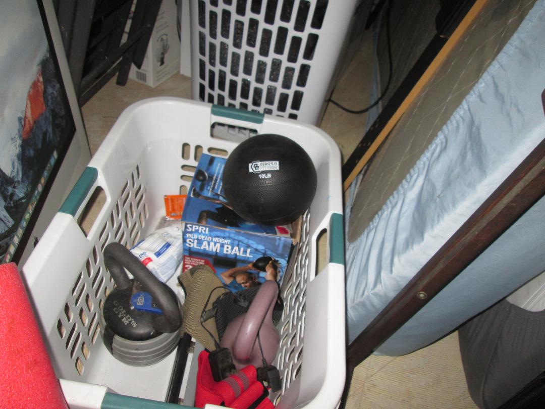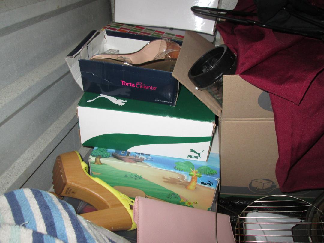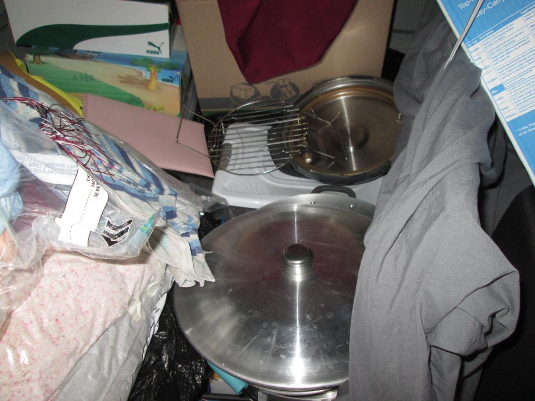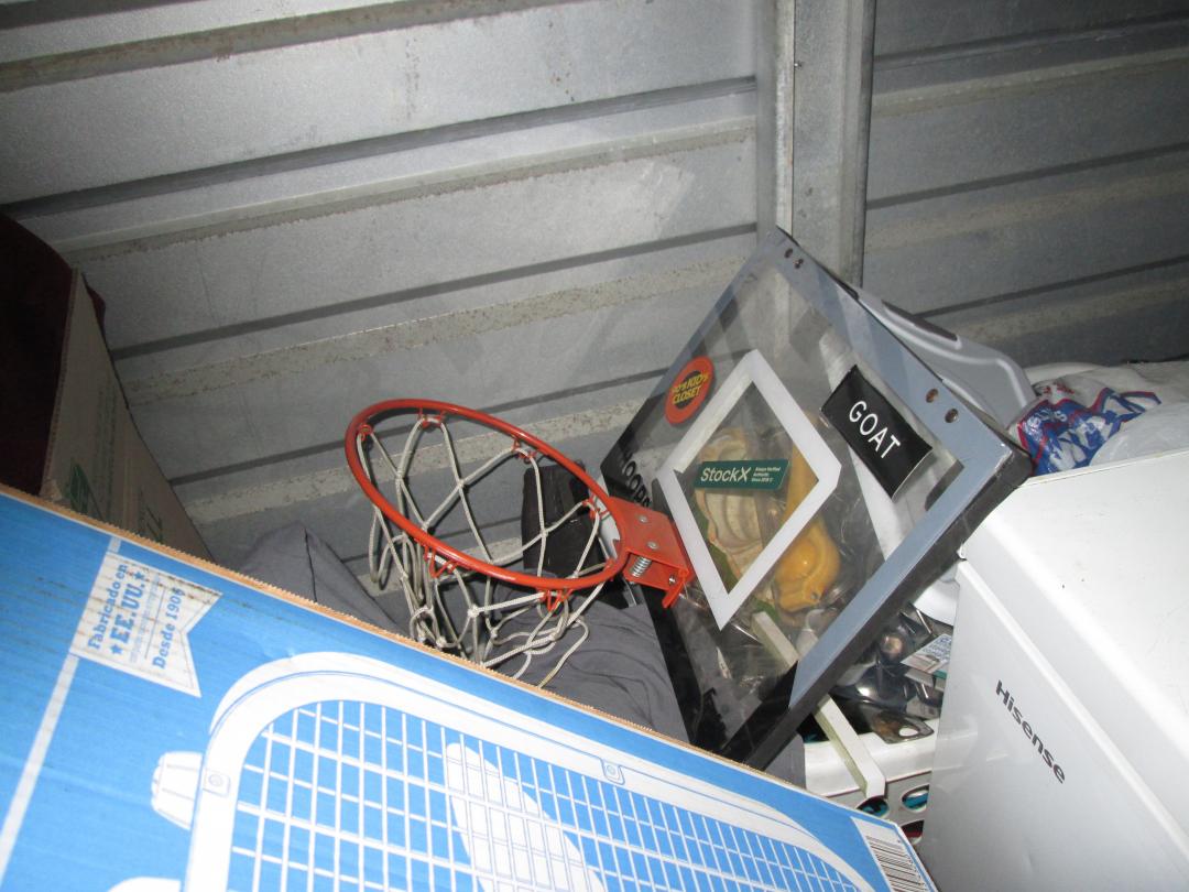 This unit appears to contain…This unit appears to contain: bags/totes, bed frame, box spring, cds, dvds, air fryer, mason jars - 3 boxes, clothing, shoes, kitchenware, dishes, dresser, fan, futon & mattress, deep freezer, crafts, headboard, mattress/bedding, power tools, mirror, rice cooker, kid basketball goal, wall art/pictures, tv, suitcase, workout equipment, apple computer