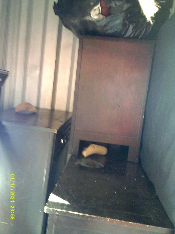 This unit appears to contain…READ ALL AUCTION RULES BEFORE BIDDING!!! Unit appears to contain: Dressers, nightstand, mattress, frame, bag of clothing