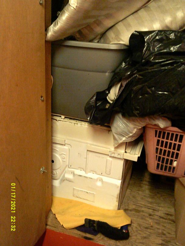 This unit appears to contain…READ ALL AUCTION RULES BEFORE BIDDING!!! Unit appears to contain: AC, boxes, totes, bags, clothing