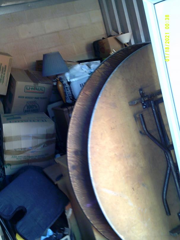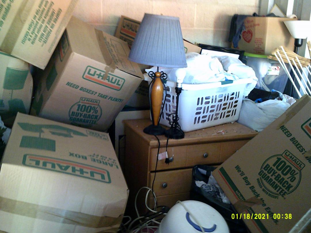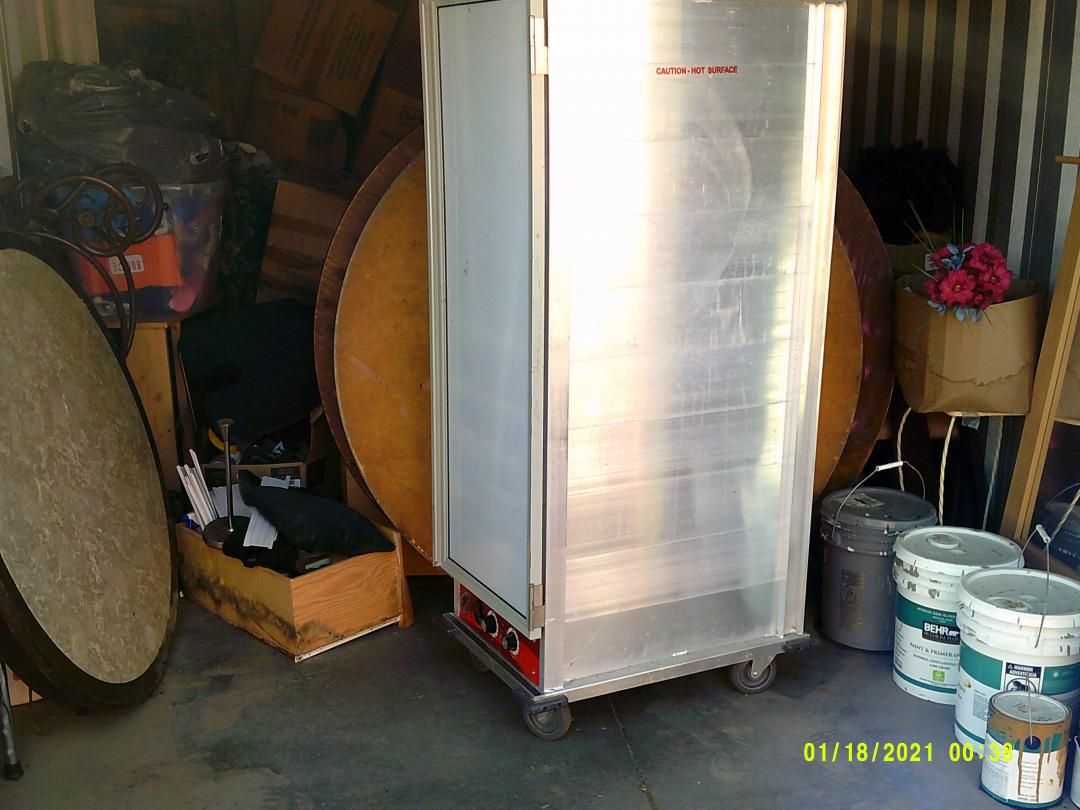 This unit appears to contain…READ ALL AUCTION RULES BEFORE BIDDING!!! Unit appears to contain: Mobile warming unit, boxes, bags, totes, round tables, paint, lamps, dresser, nightstands, fake plants, decor, mirror