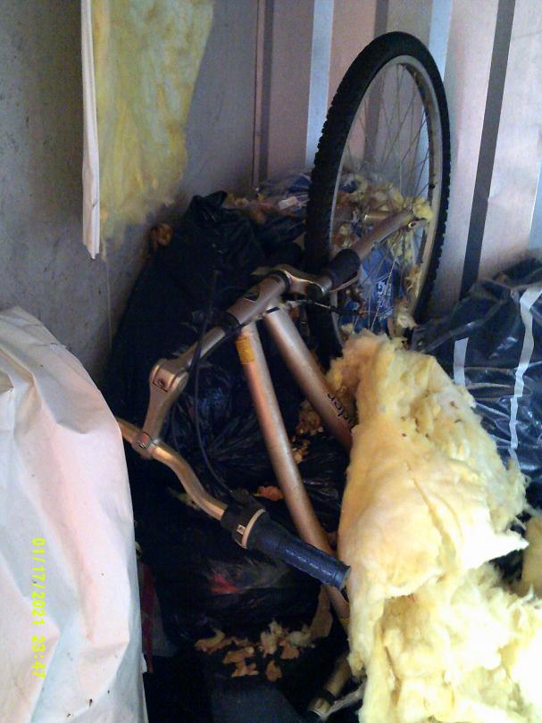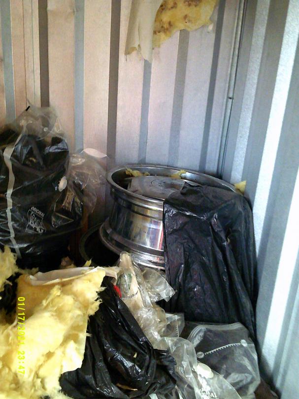 This unit appears to contain…READ ALL AUCTION RULES BEFORE BIDDING!!! Unit appears to contain: Clothing, rims, bike, bags