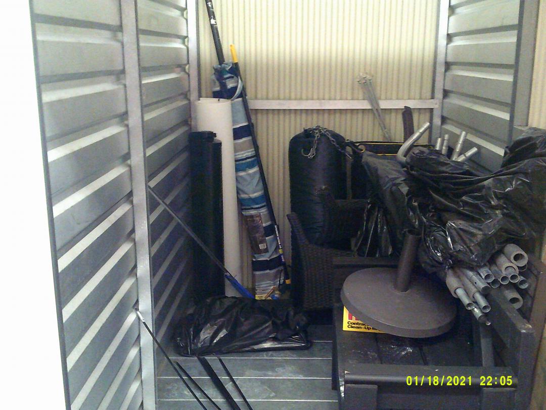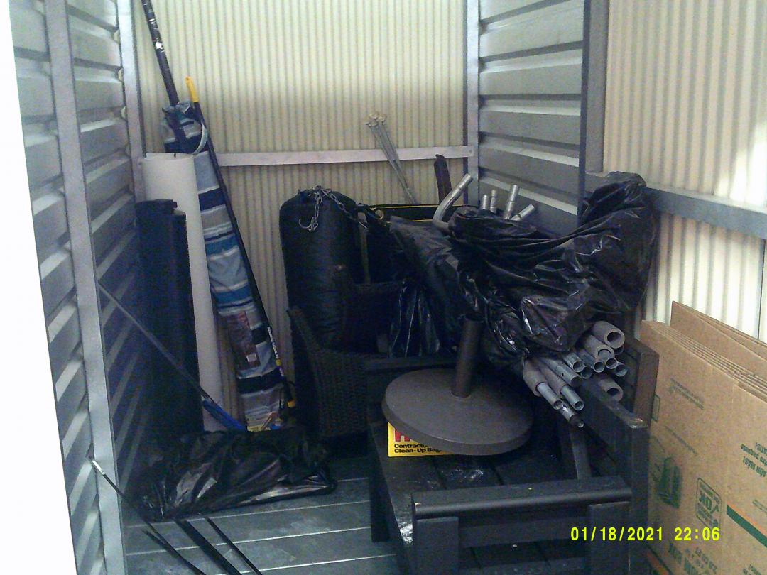 This unit appears to contain…READ ALL AUCTION RULES BEFORE BIDDING!!! Unit appears to contain: Bench, boxes, tent w/ poles, heavy bags