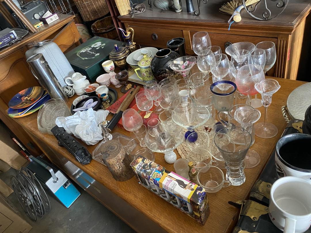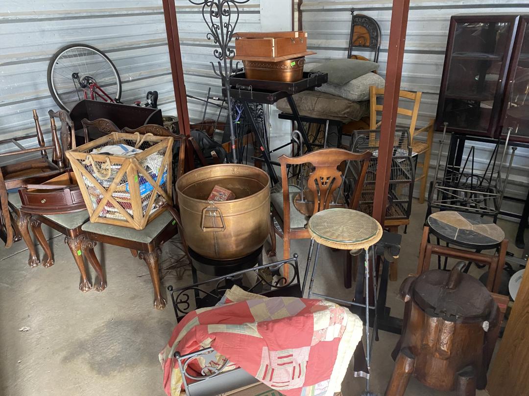 This unit appears to contain…Selling all the contents of a storage unit. The inventory consists of some dressers, end tables, a piano, a ton of art work and china wear, silverware, a vintage television and music play and tons of other stuff!